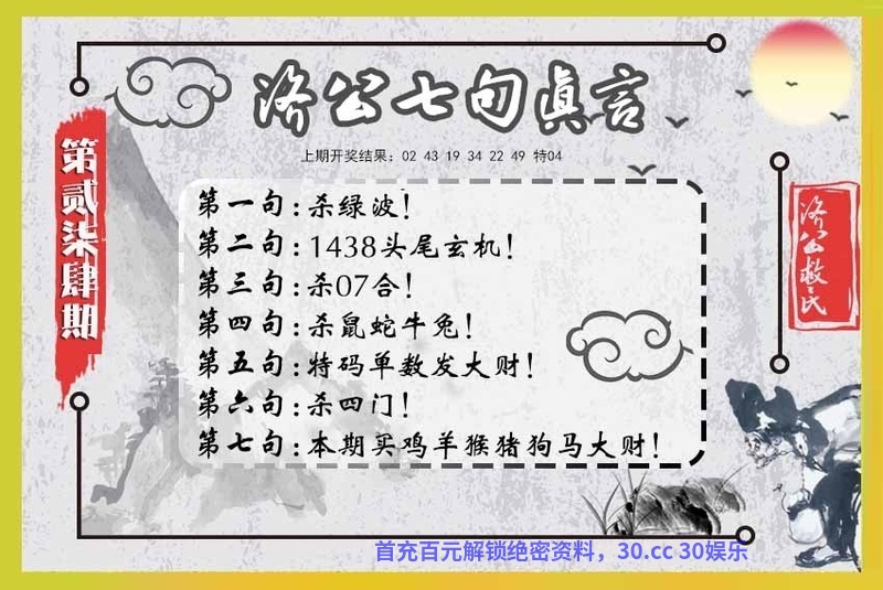 277期:必中天机/特七决/正版欲钱料/特码生肖诗/澳门天机诗